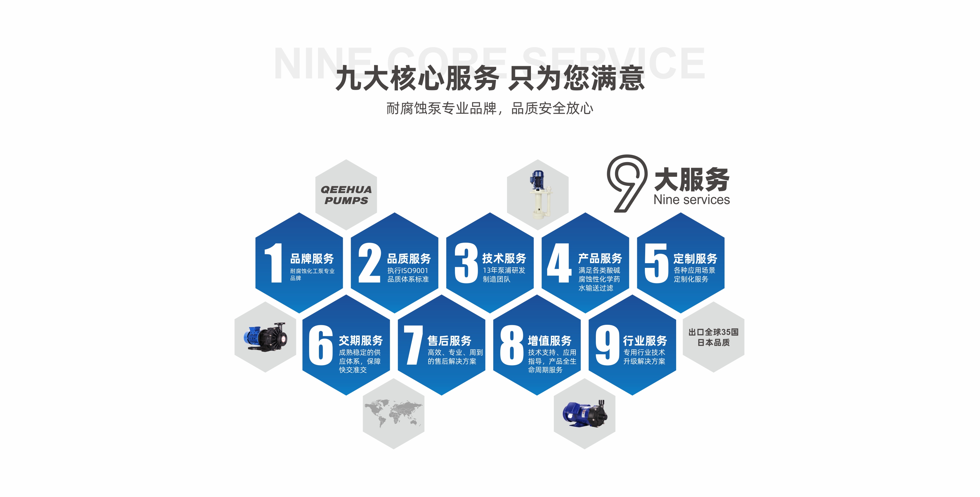 14年來(lái),企華服務(wù)PCB、環(huán)保、電鍍、涂裝、新能源、液流儲(chǔ)能、光伏和半導(dǎo)體等行業(yè)的客戶(hù)總數(shù)已超13000家,產(chǎn)品出口至全球40余國(guó),應(yīng)用案例數(shù)位于行業(yè)前列。現(xiàn)役主要產(chǎn)品線(xiàn)涵蓋耐腐蝕化工泵系列、化工管道管件系列、閥門(mén)系列、壓力表系列、流量計(jì)系列以及PP板材系列等,產(chǎn)品綜合性能穩(wěn)定、可靠性強(qiáng),均嚴(yán)格執(zhí)行德標(biāo)/國(guó)標(biāo)(DIN),美標(biāo)(ANSI),日標(biāo)(JIS)和臺(tái)標(biāo)(CNS)等國(guó)家和地區(qū)標(biāo)準(zhǔn)。